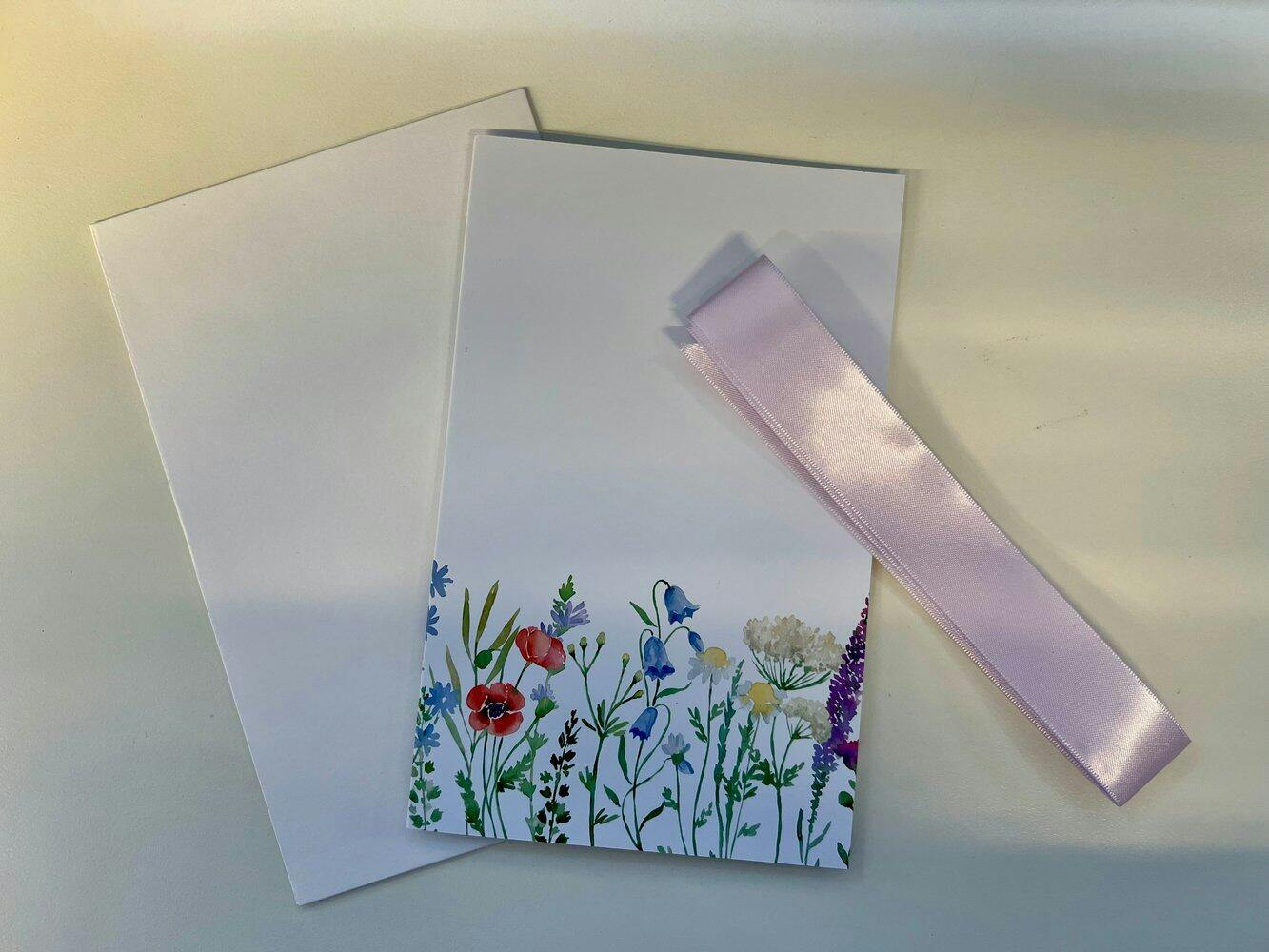 We both really like floral artwork, and the purple ribbon looks especially lovely. I also got the matching envelope with this order, and the quality is just as impressive.